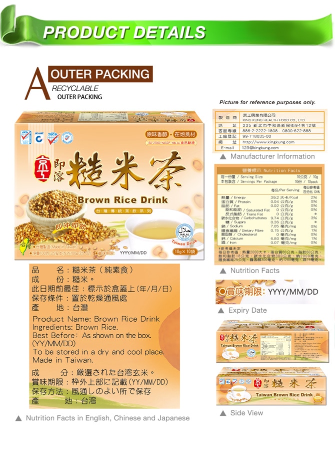 | Preparation | » Hot Drink:Pour in 300cc of boiling water. Stir and ready to drink. |